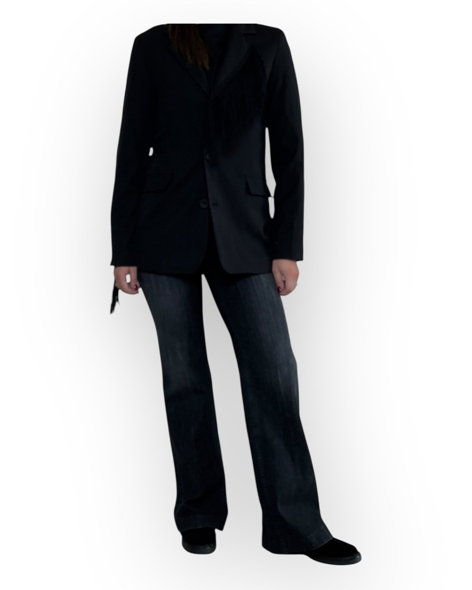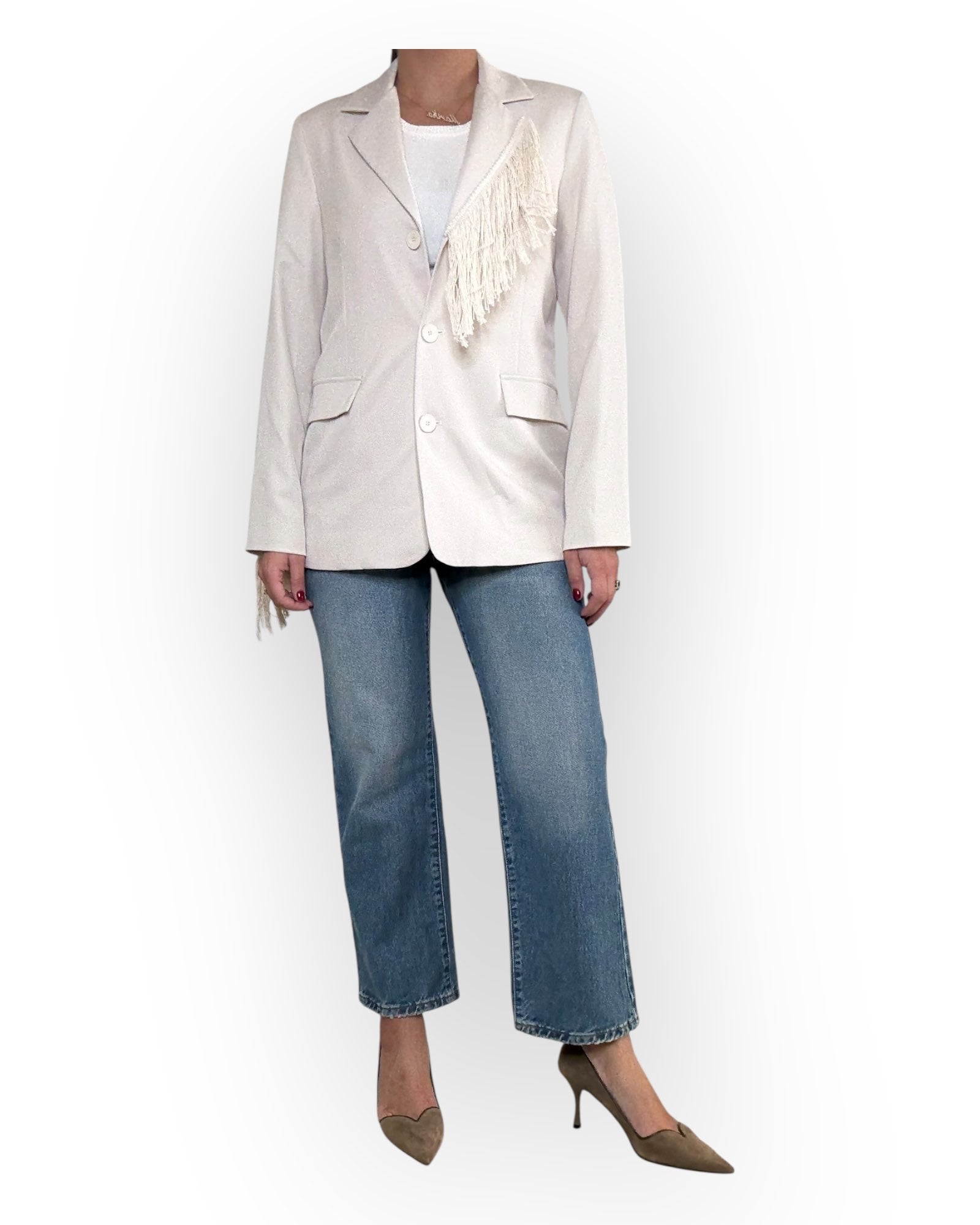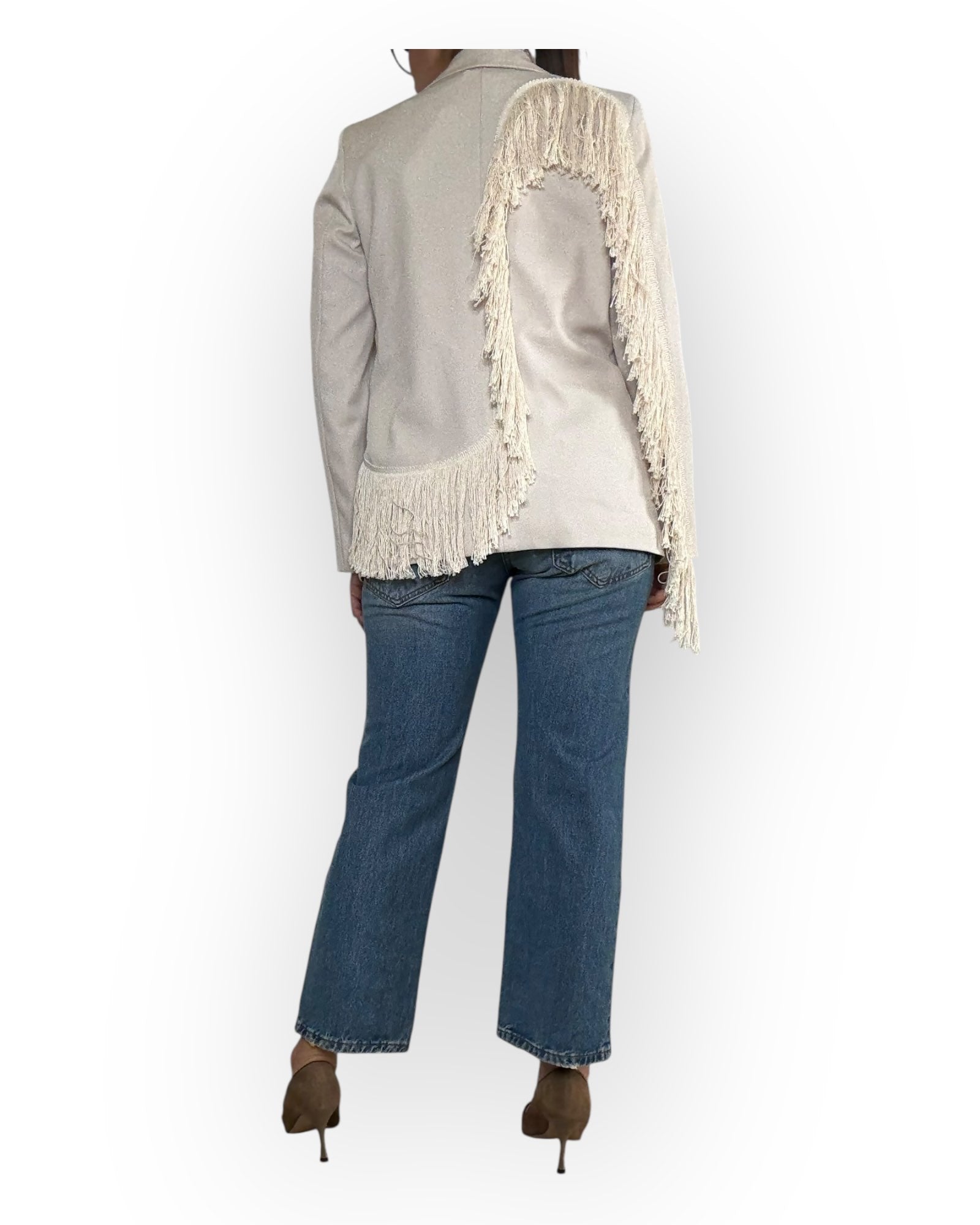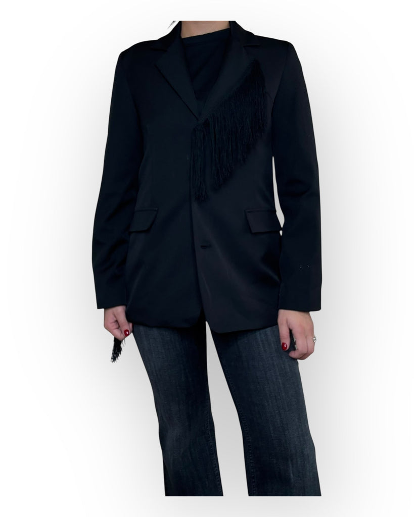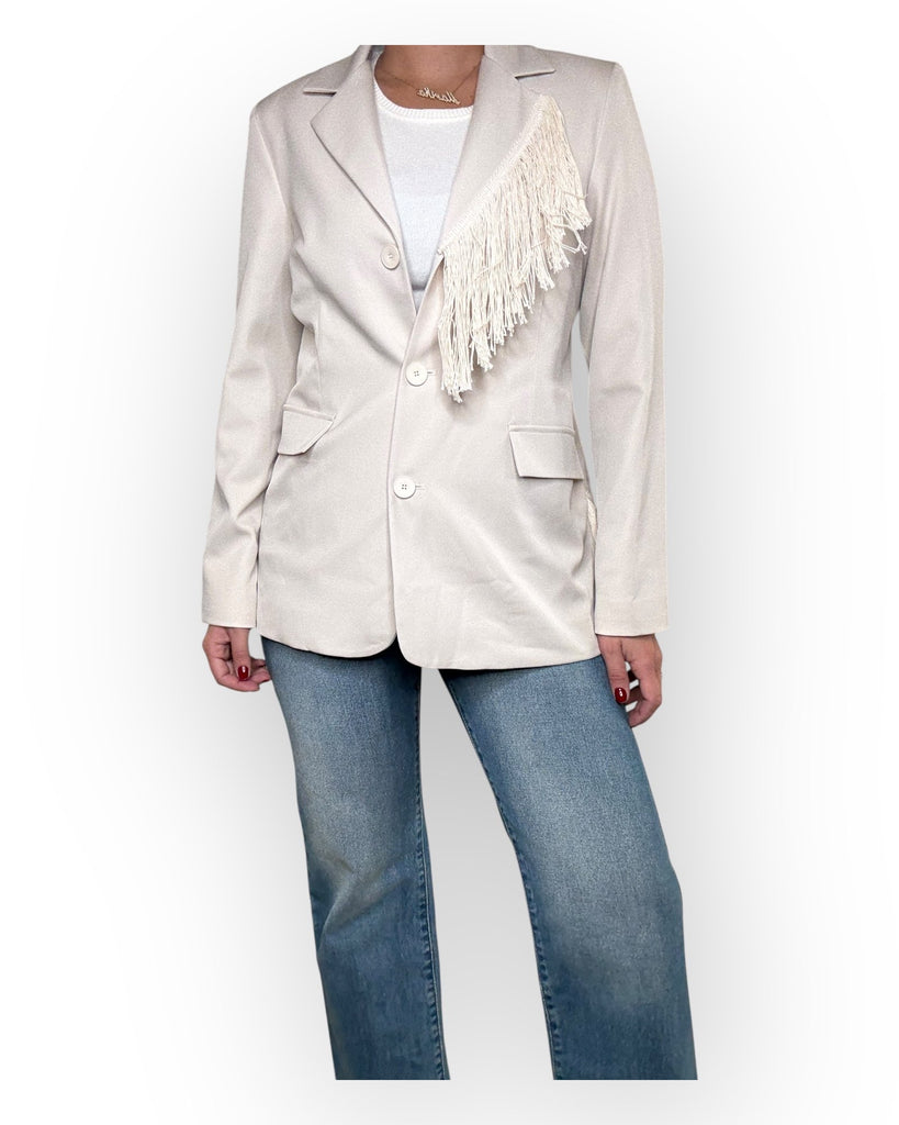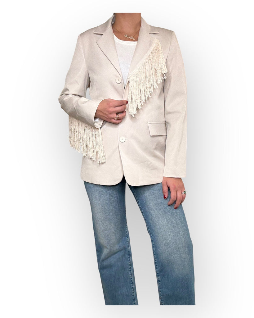 GIACCA MONOPETTO CON FRANGE SUL DAVANTI E SUL RETRO.