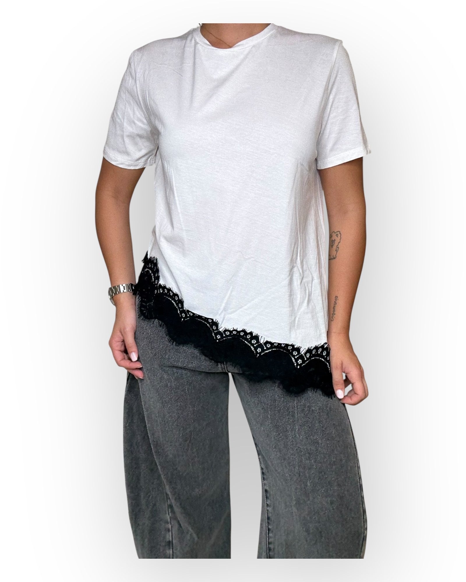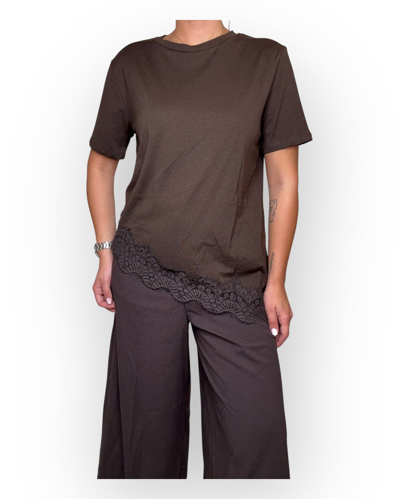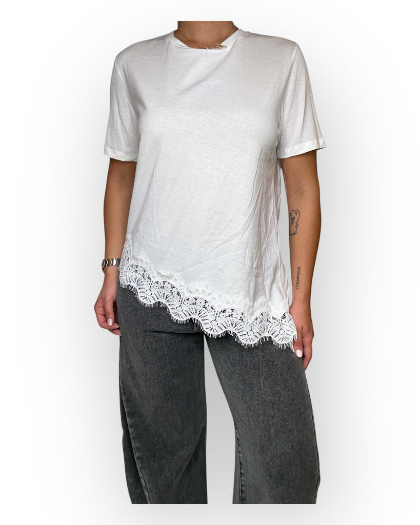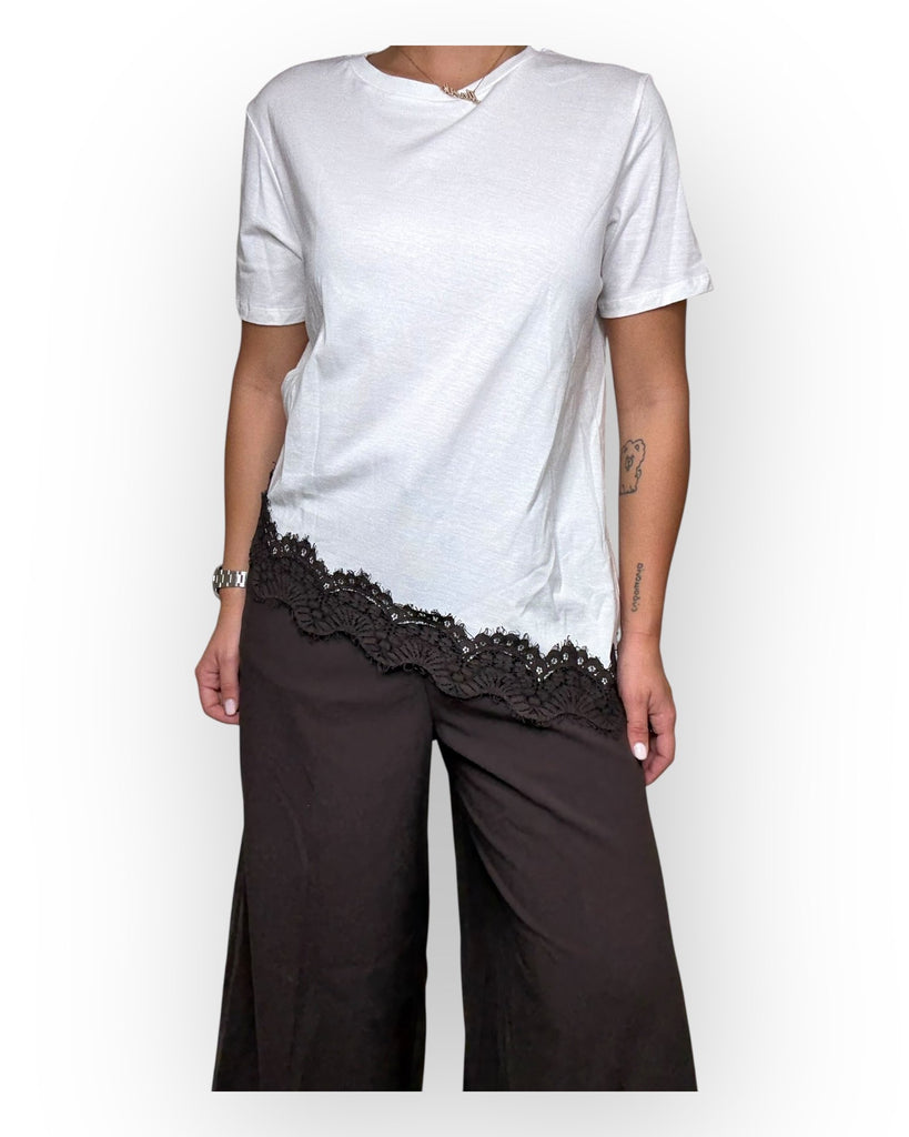 T-SHIRT TENSIONE IN ASSIMETRICA CON DETTAGLIO IN PIZZO