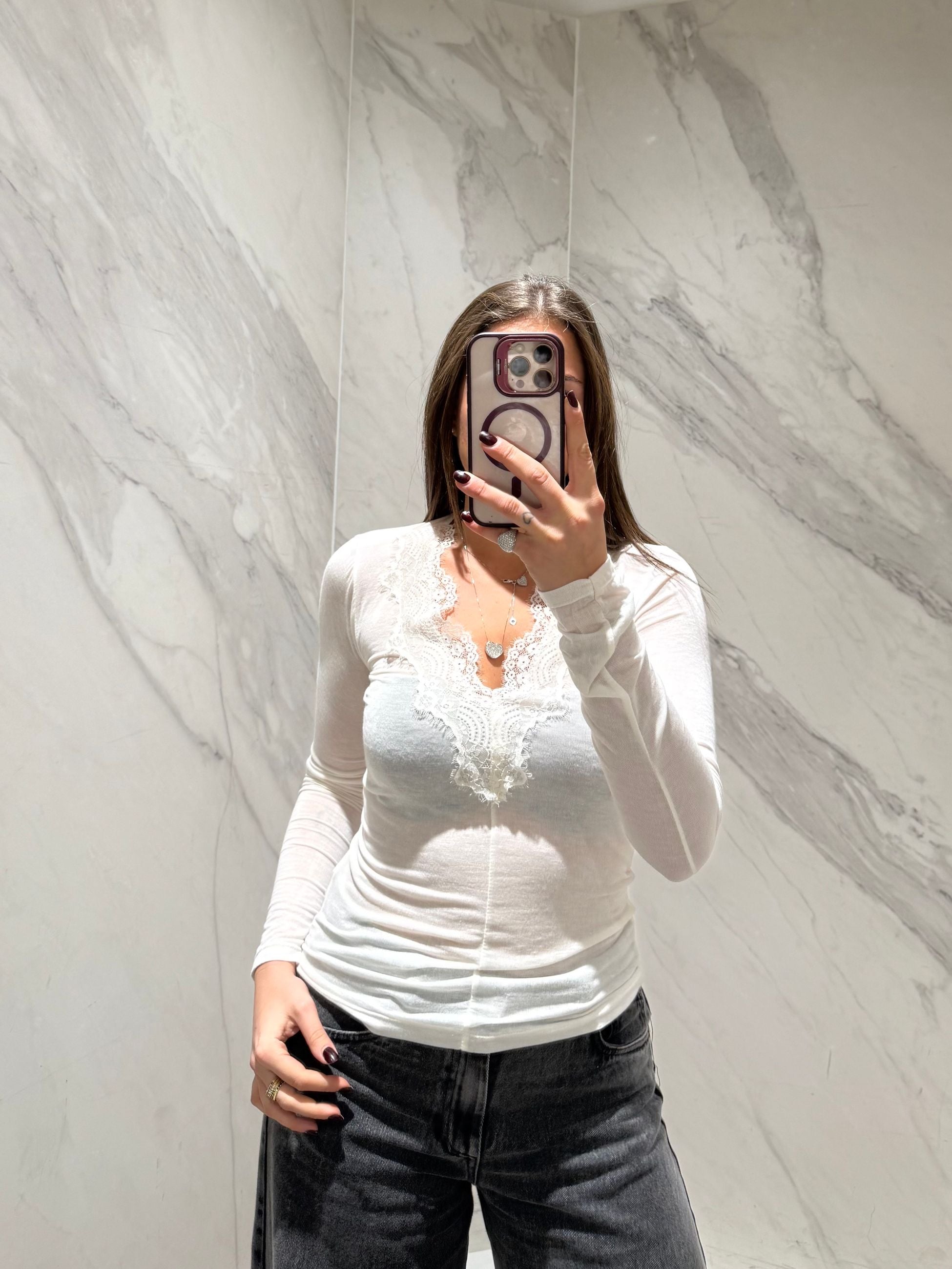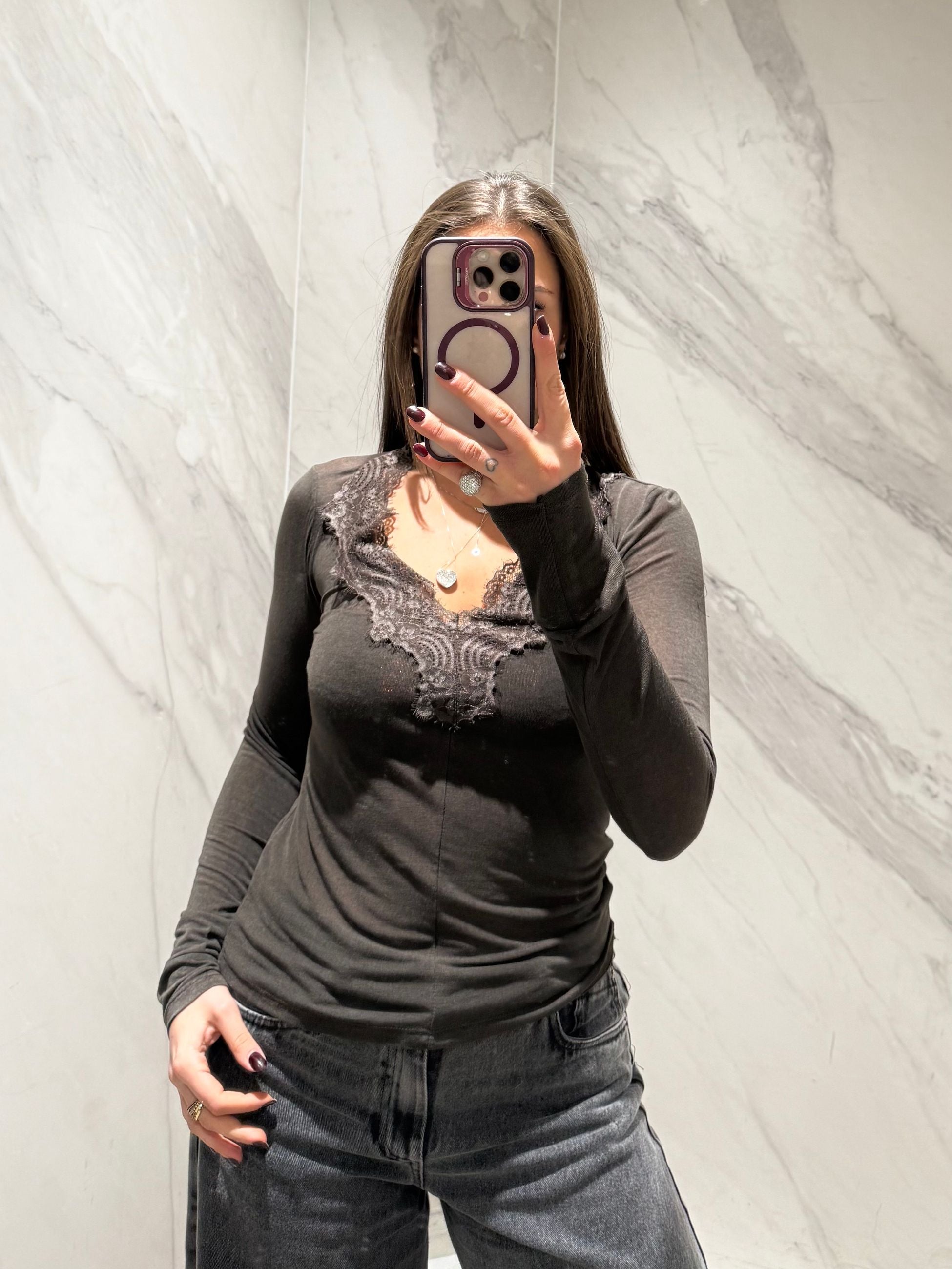 Cashmerina con scollo a v e pizzo davanti