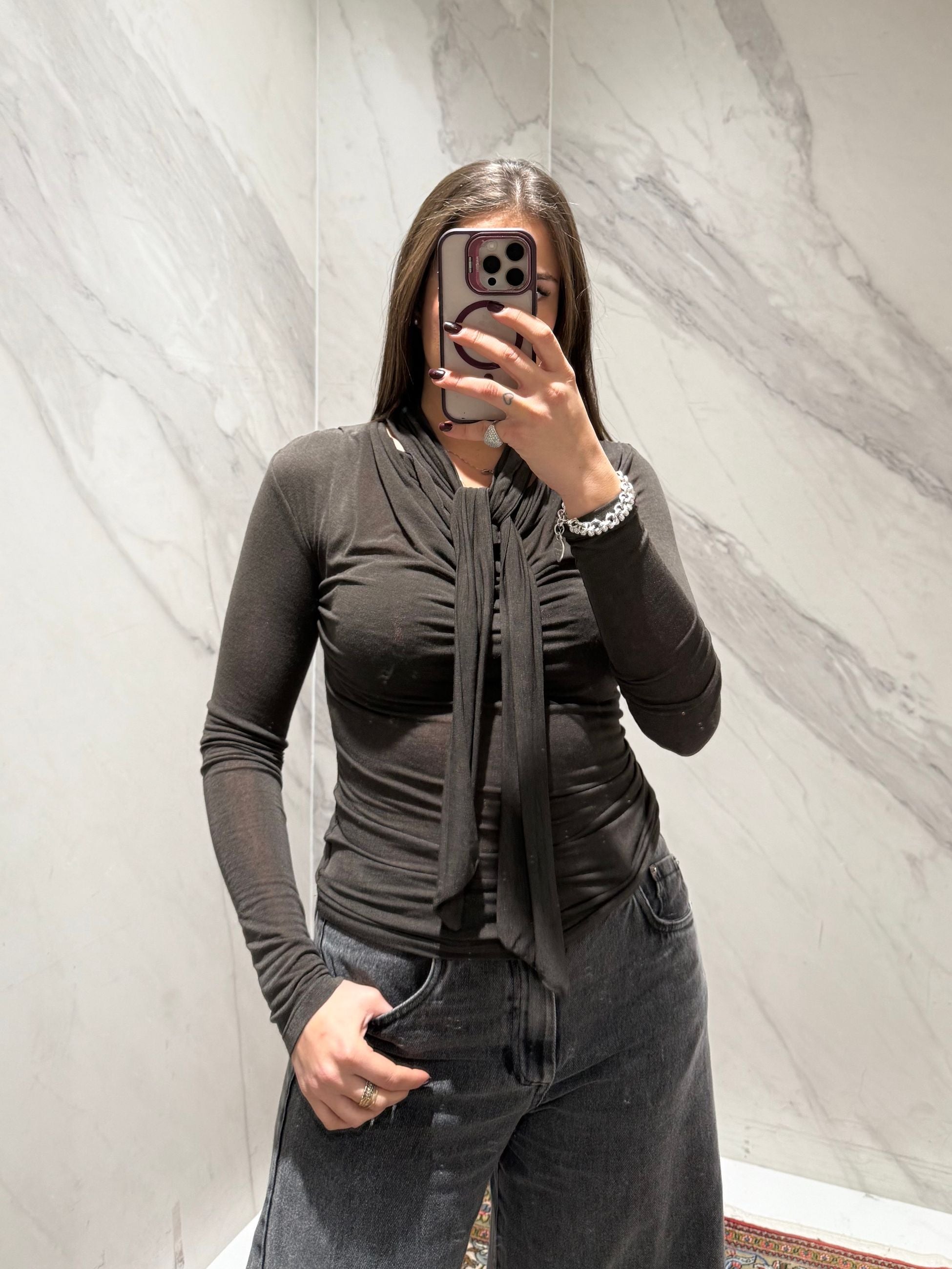 Cashmerina con scollo a v e fiocco davanti incorporato