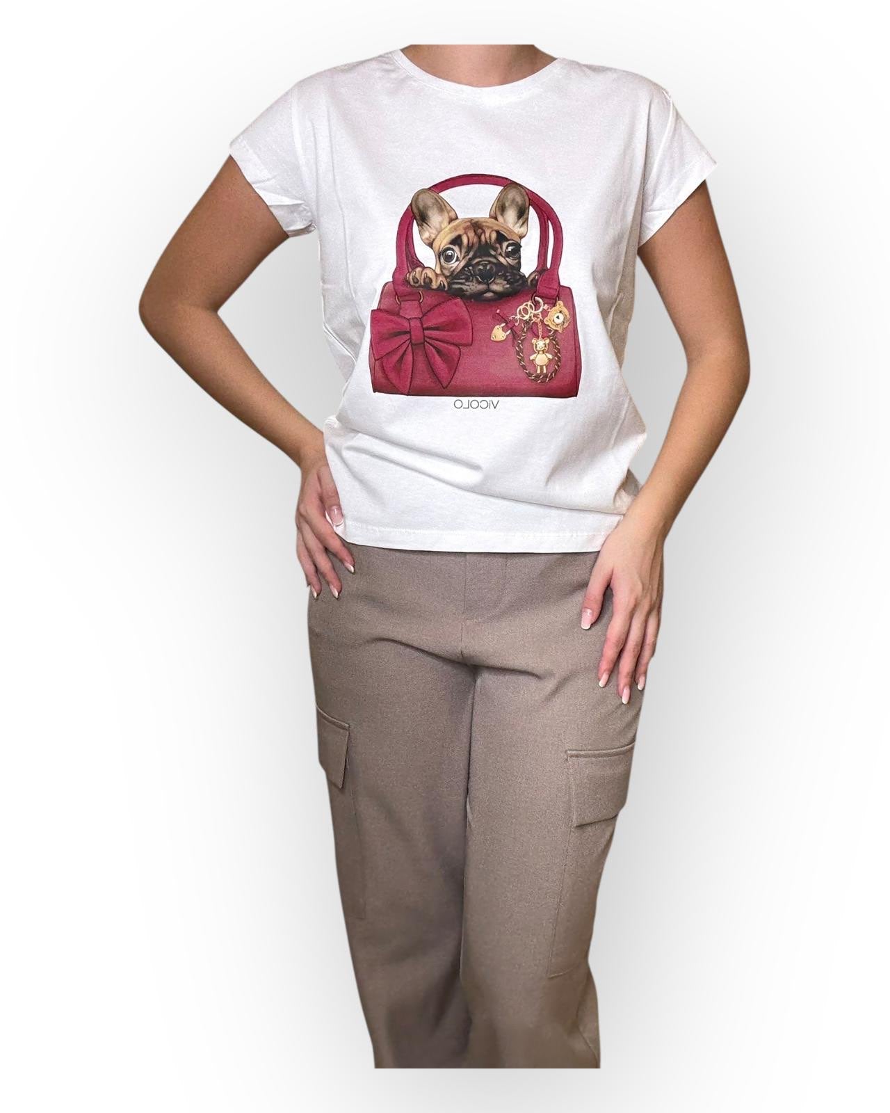 T-SHIRT CON BULL DOG DETTAGLI IN BORDEUX