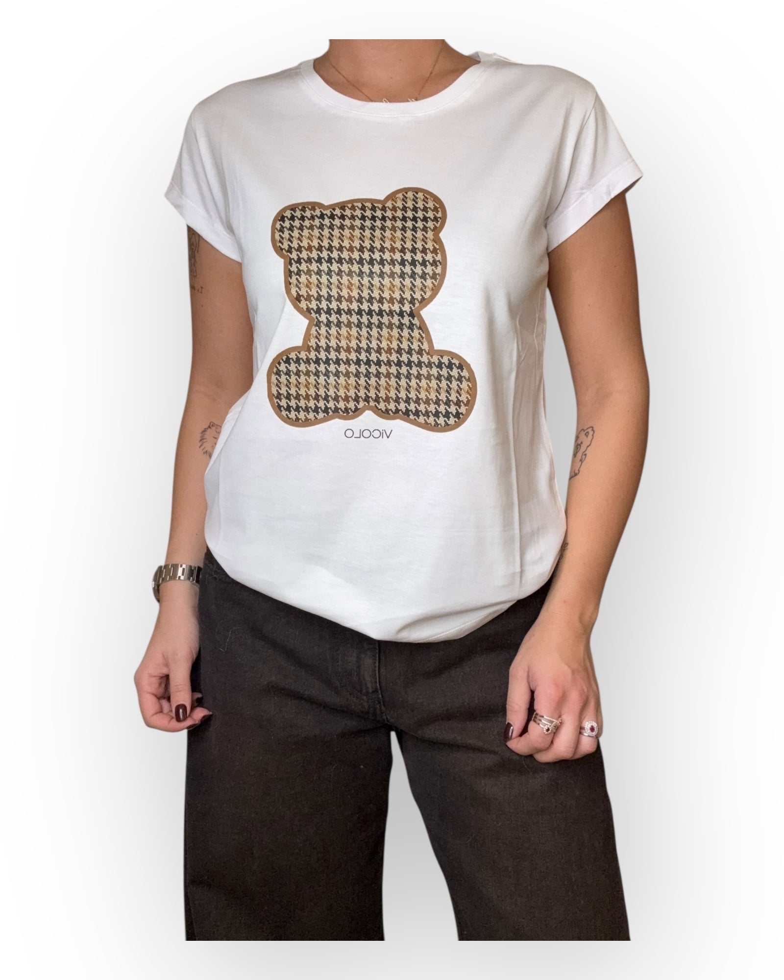 T-SHIRT VICOLO CON STAMPA ORSETTO A FANTASIA PIED DE POULE