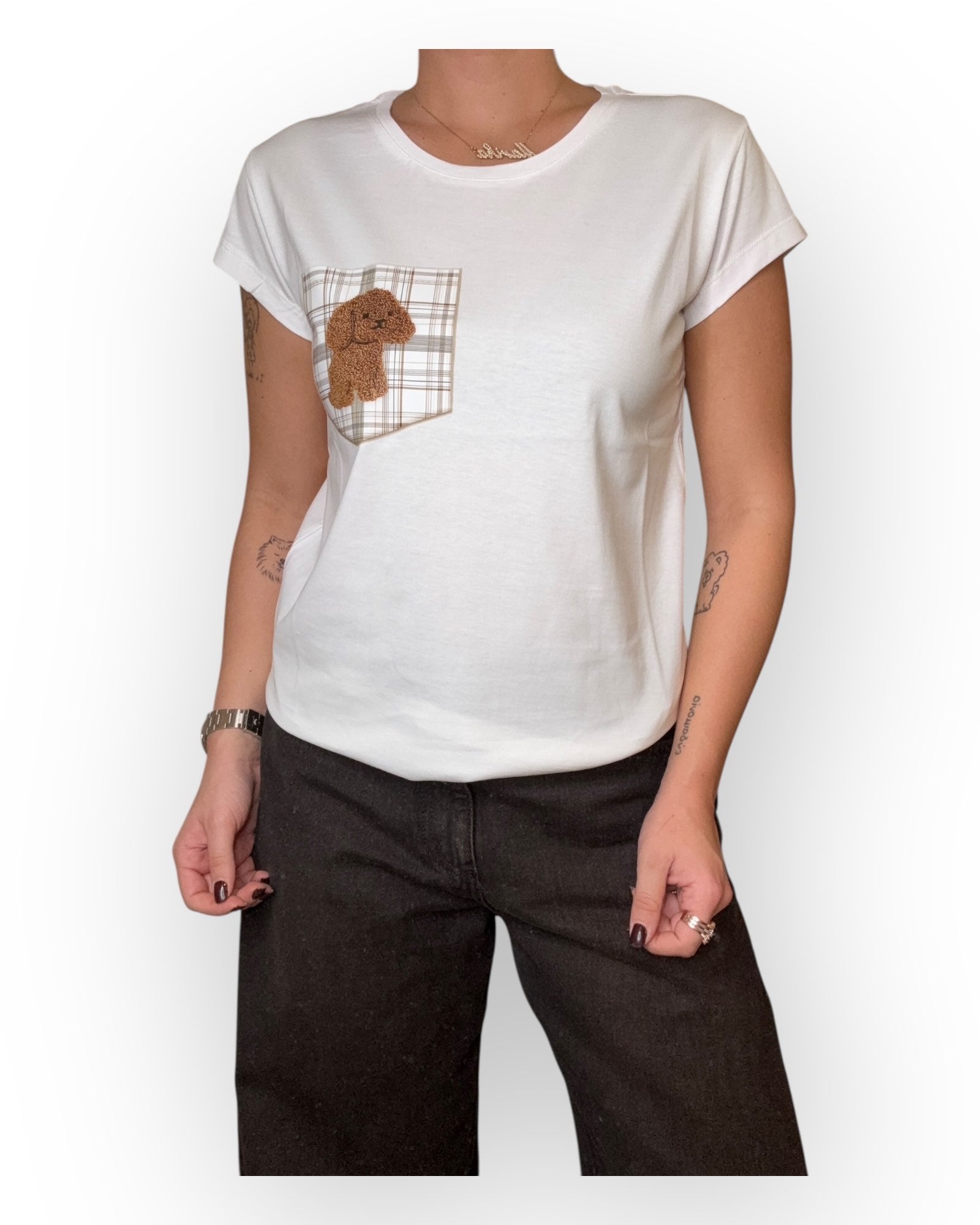 T-SHIRT VICOLO CON STAMPA TASCHINO LATERALE E CAGNOLINO