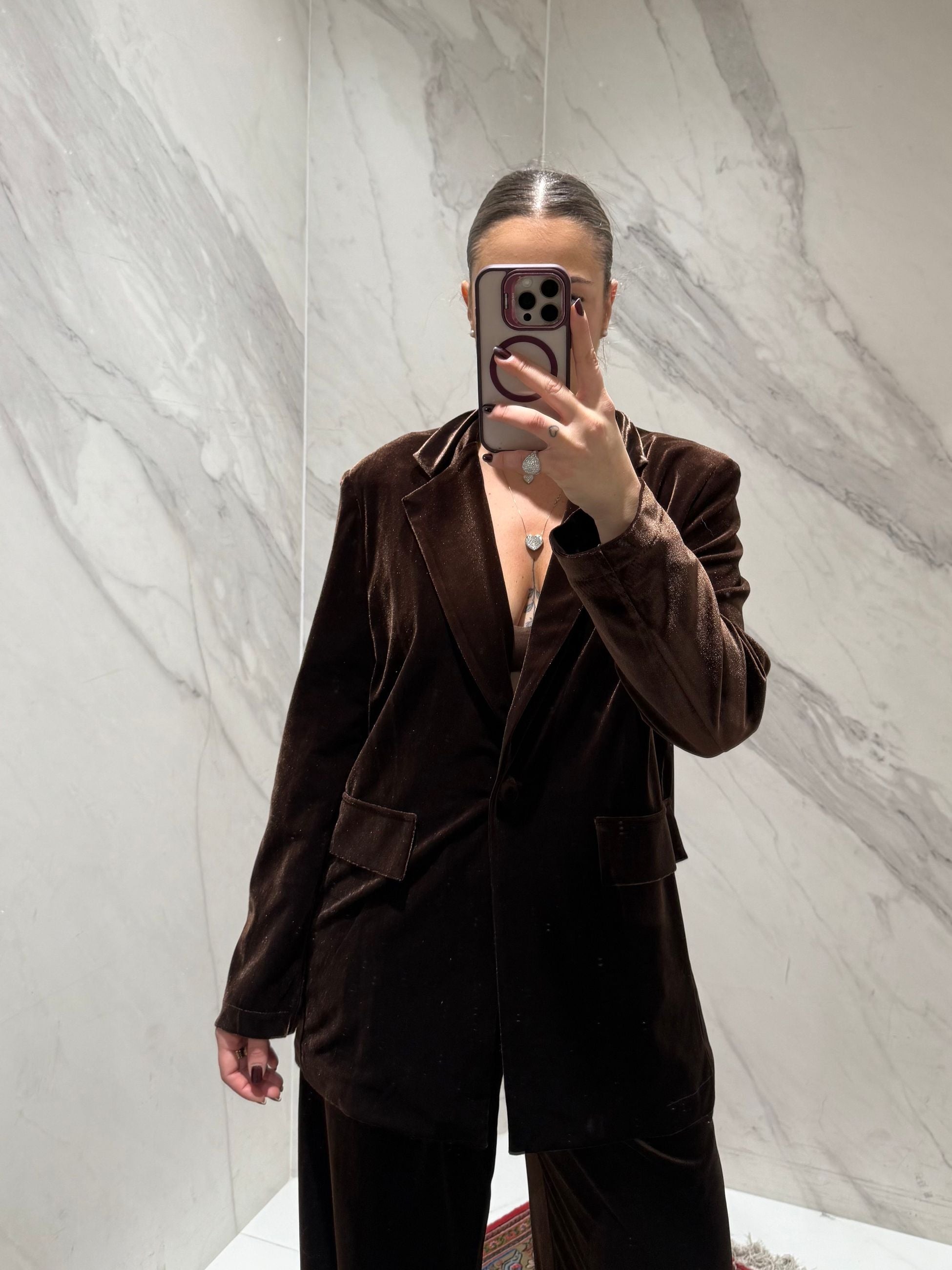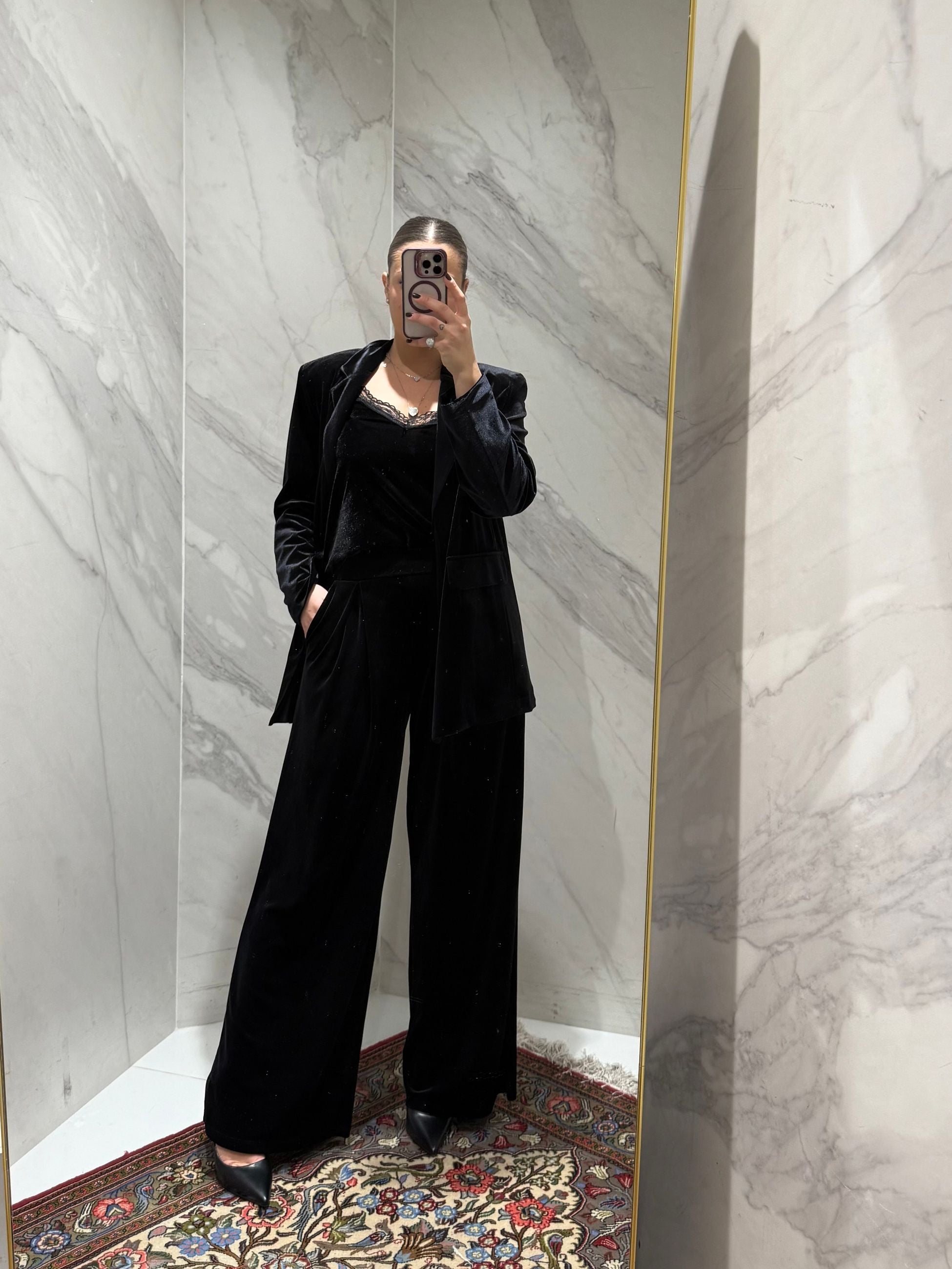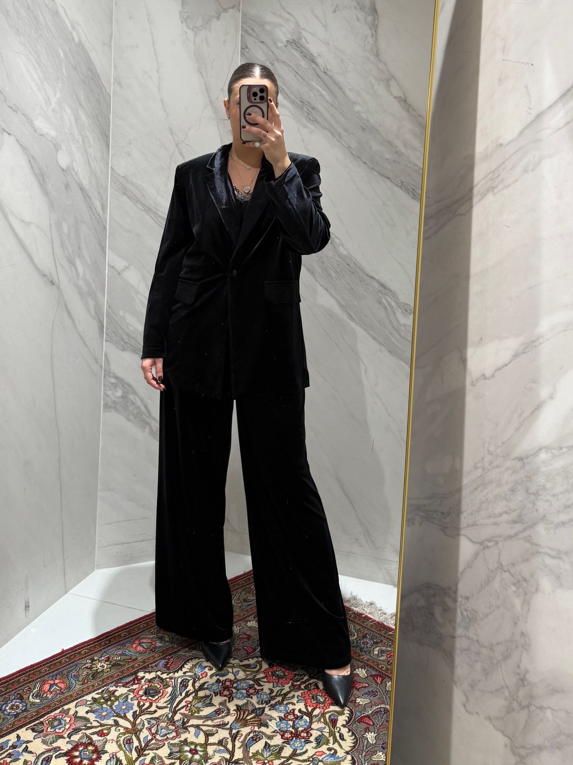 TAILLEUR TENSIONE IN IN CINIGLIA CON GIACCA MONOPETTO E PANTALONE A GAMBA DRITTA