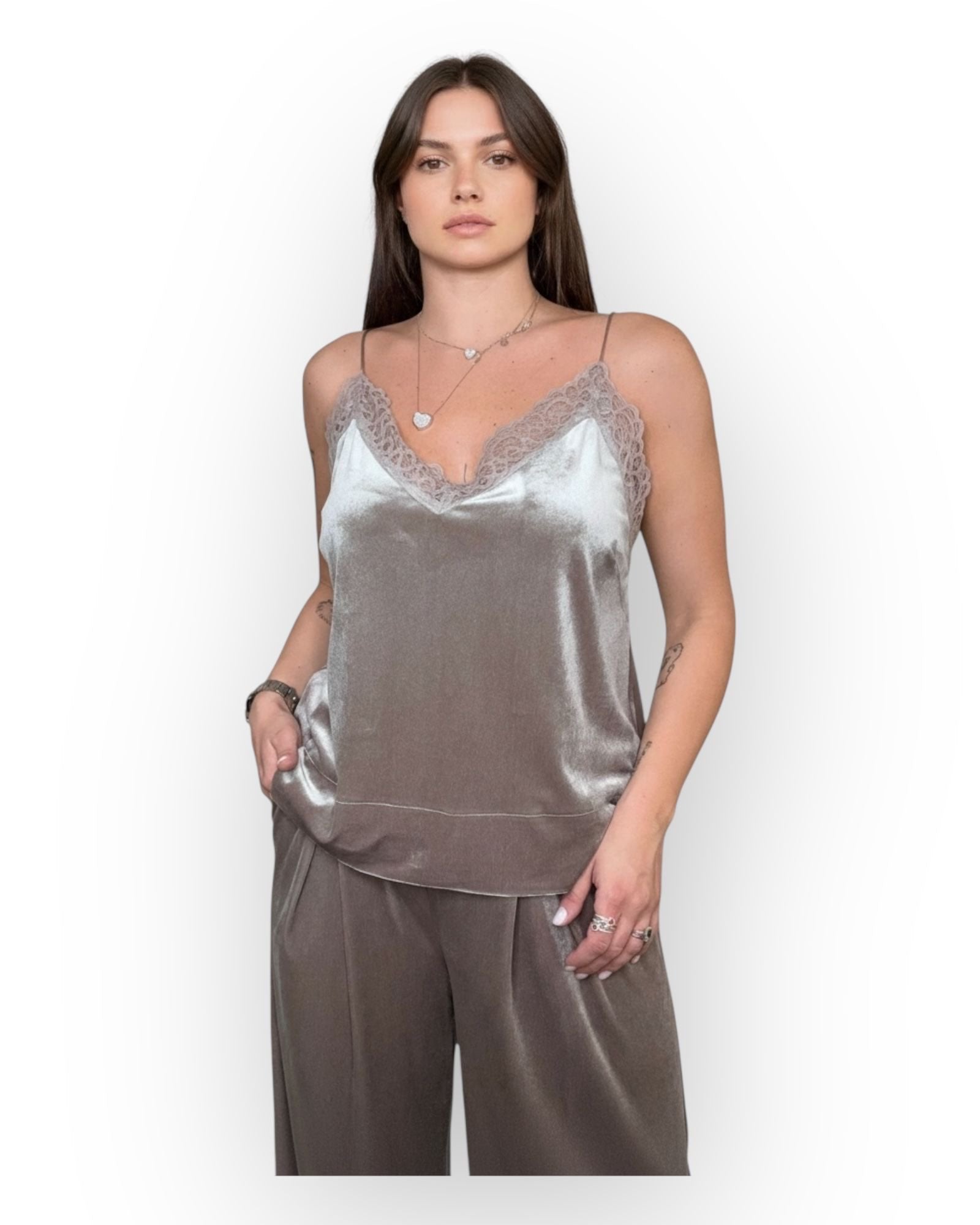 CANOTTA IN VELLUTO E PIZZO.