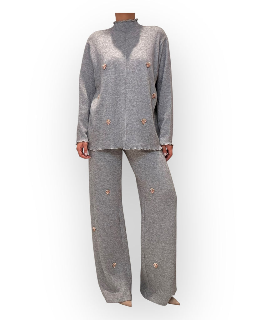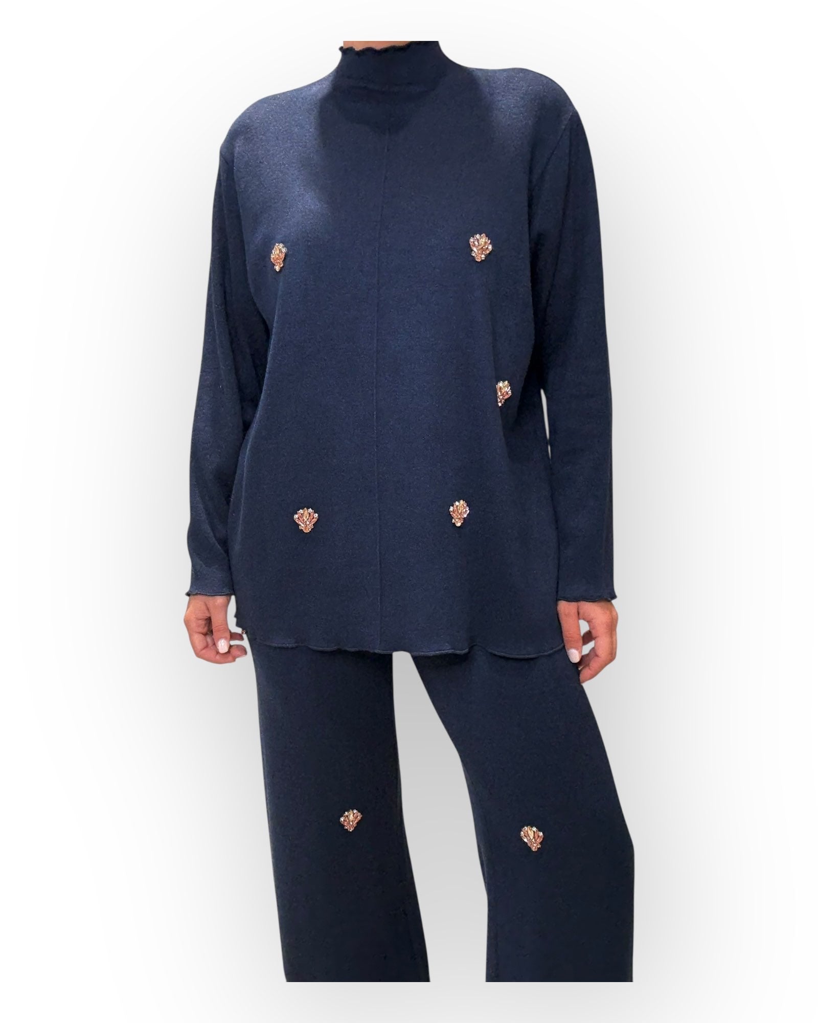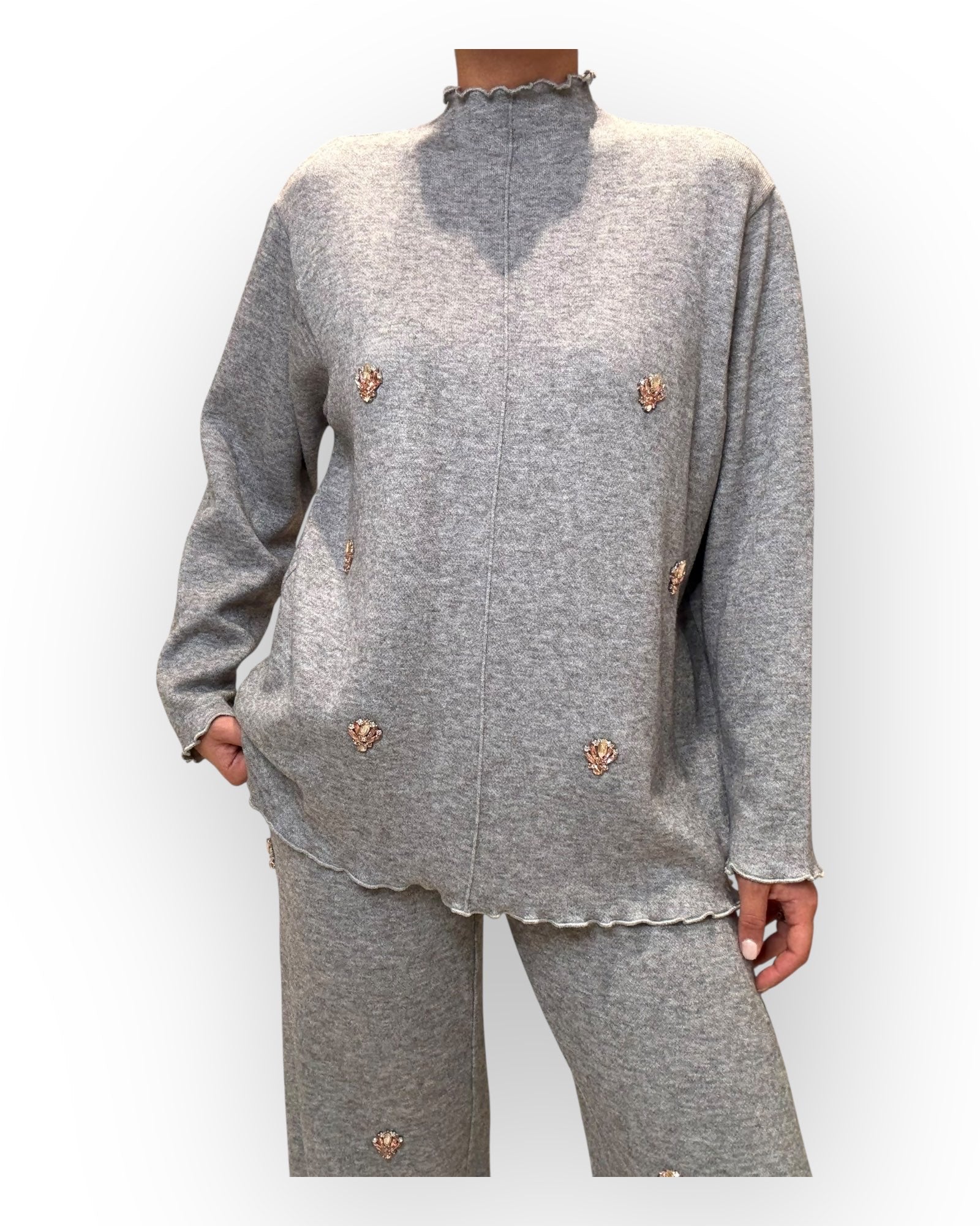 MAGLIONCINO CON COLLO CRATERE CON CABOCHON SUL DAVANTI.