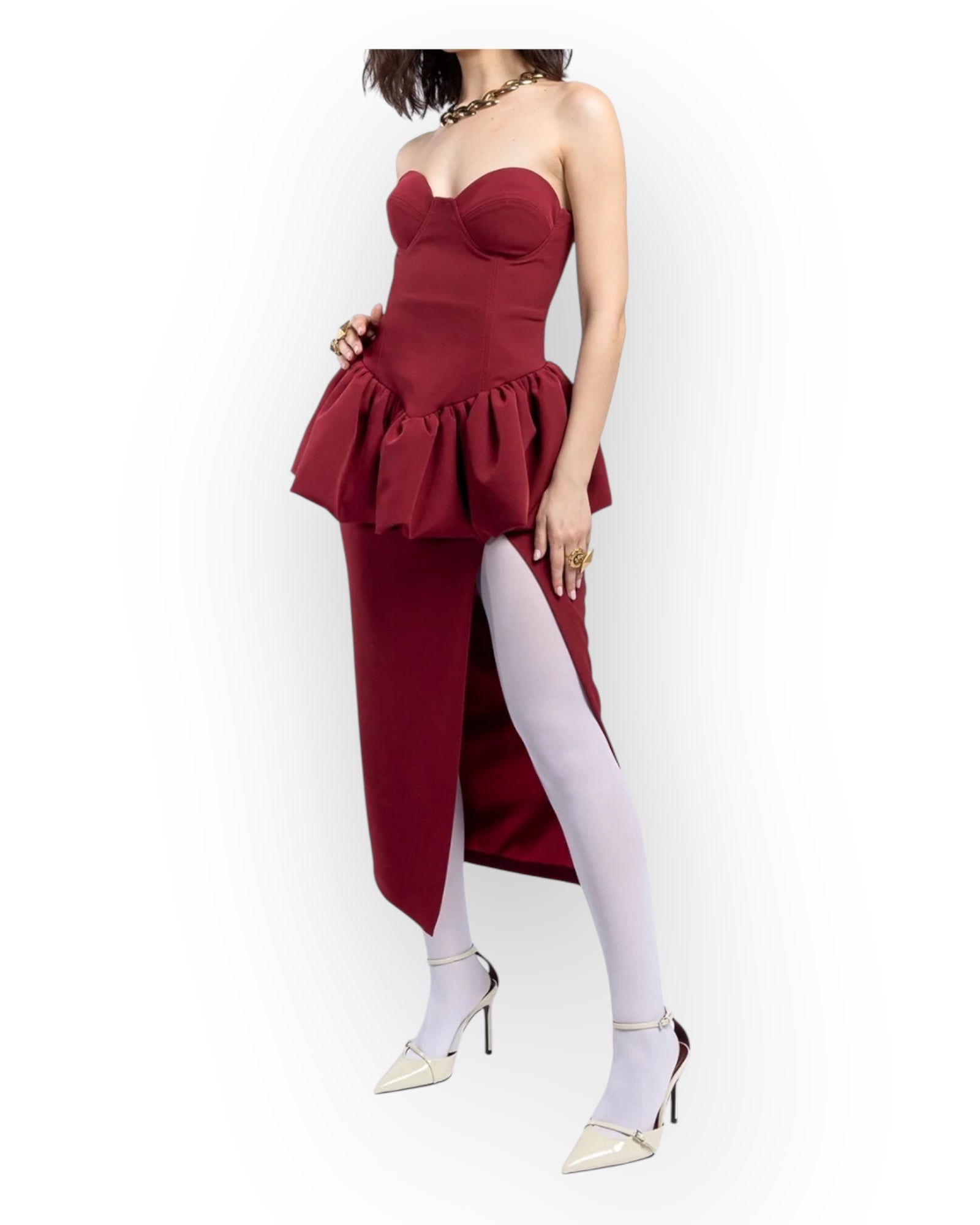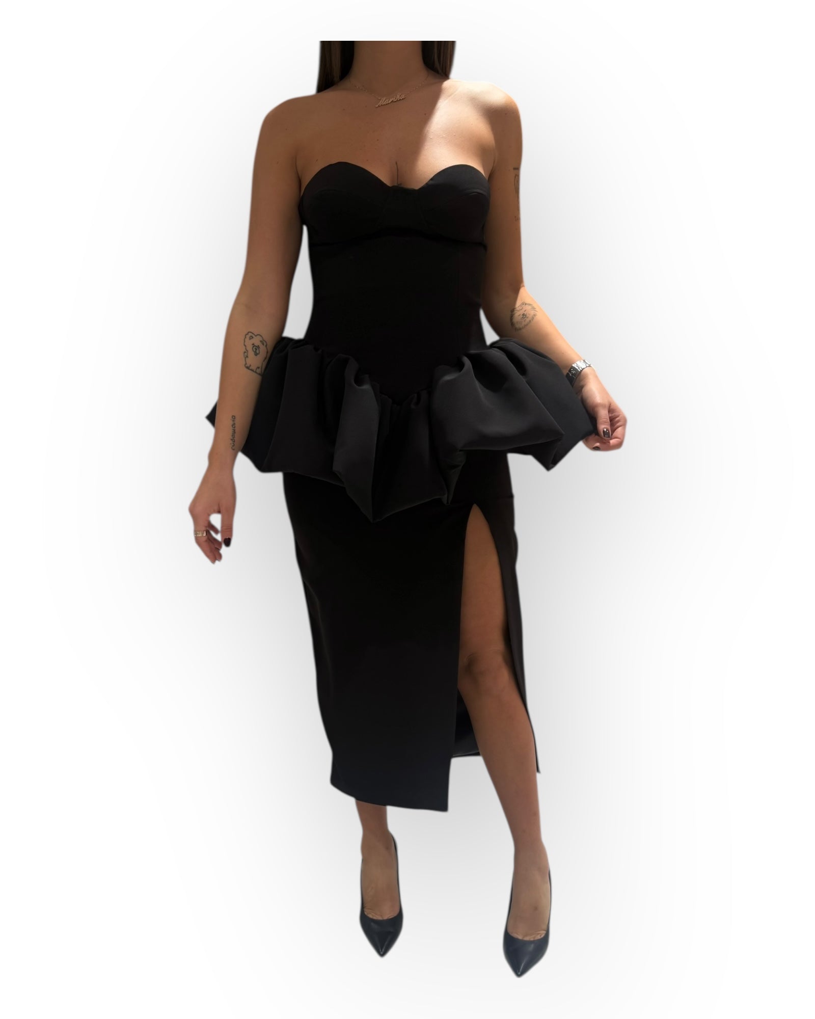 ABITO LONGUETTE SCOLLO A CUORE E SPACCO SUL DAVANTI.