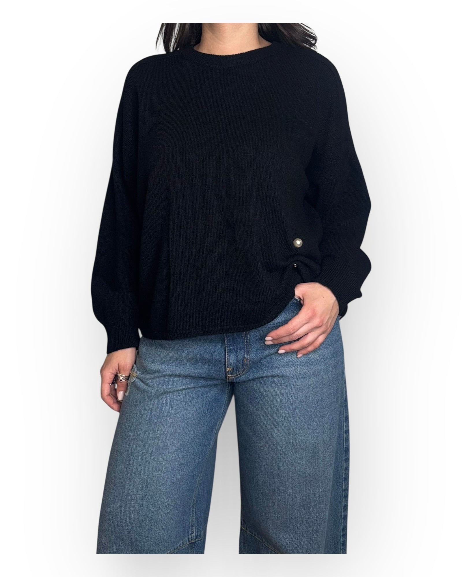 MAGLIONE VICOLO CON DRAPPEGGIO LATERALE SPILLA A PERLA