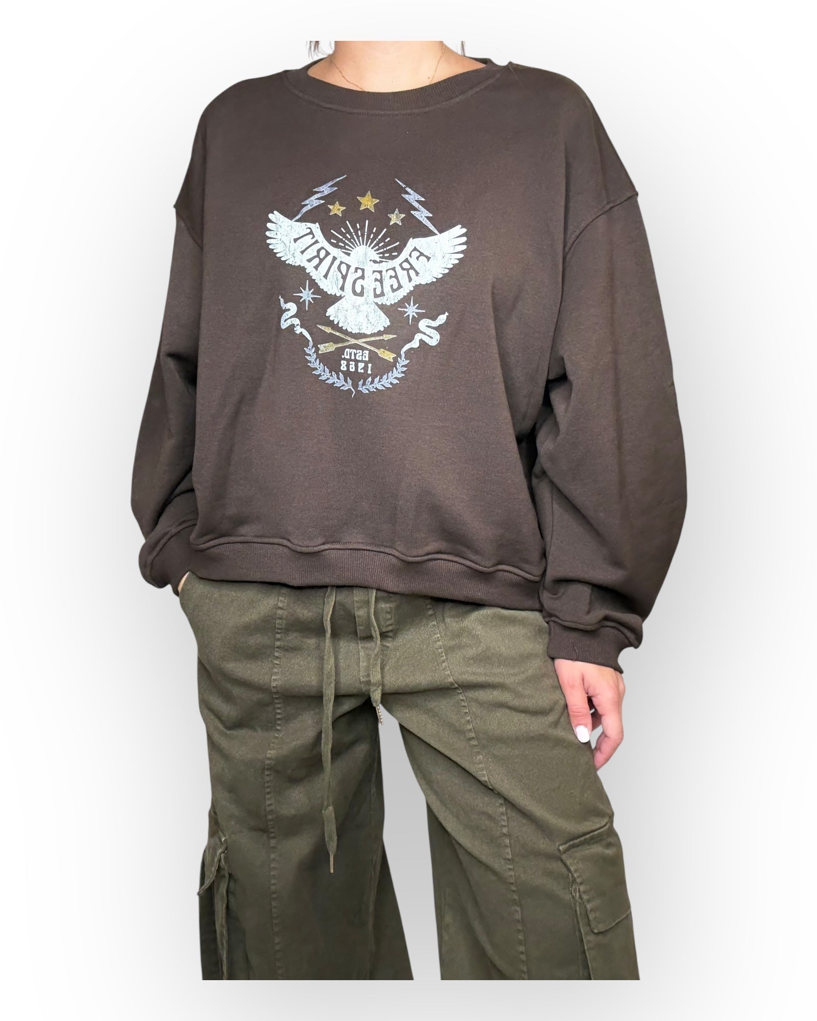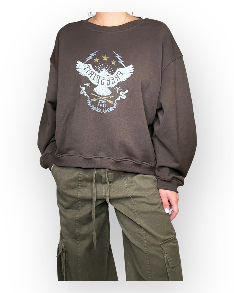 FELPA GARZATA CON STAMPA, CORTA DAVANTI E LUNGA SUL RETRO