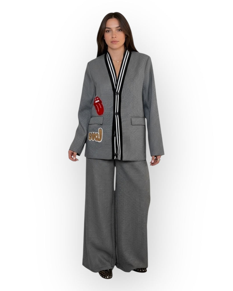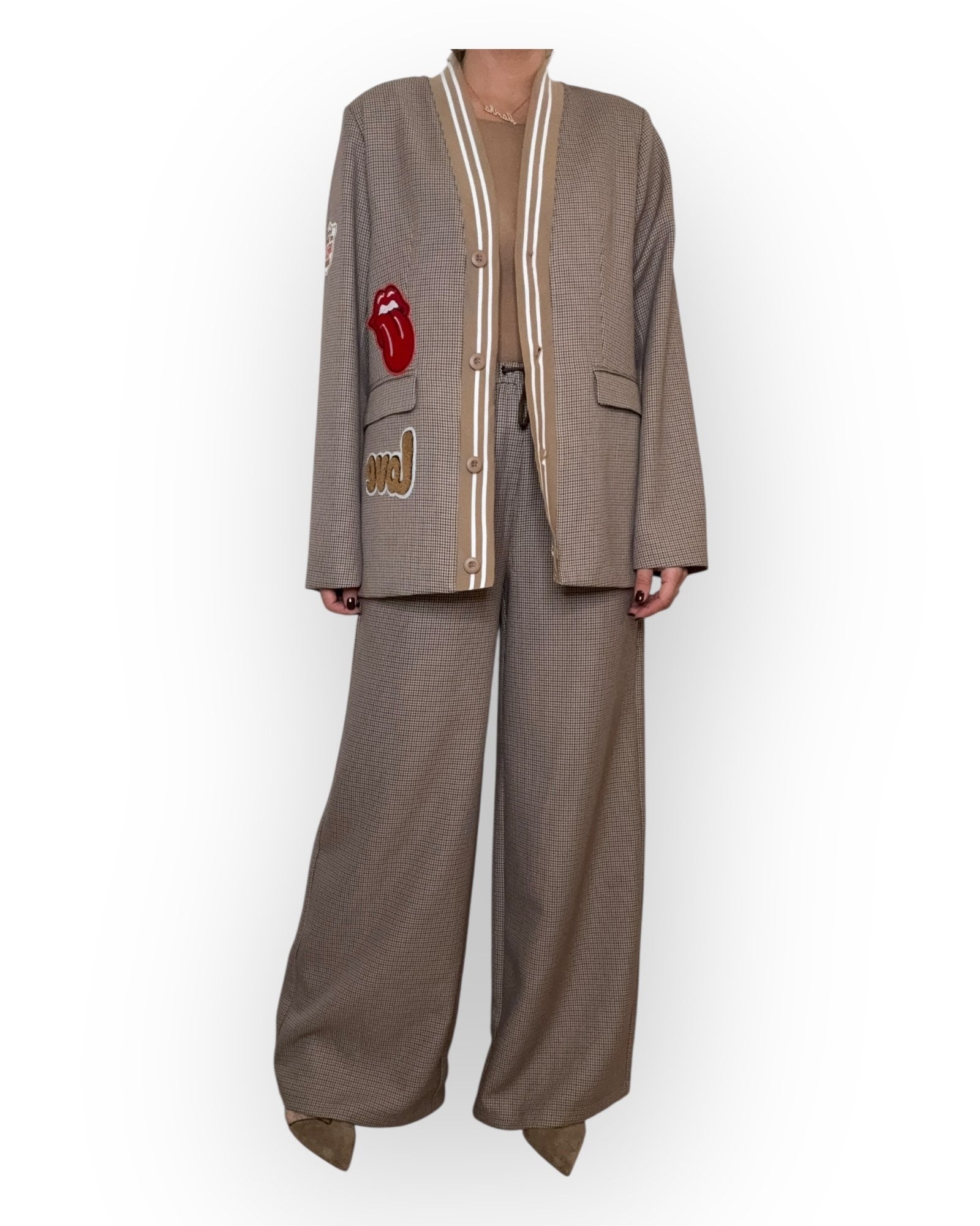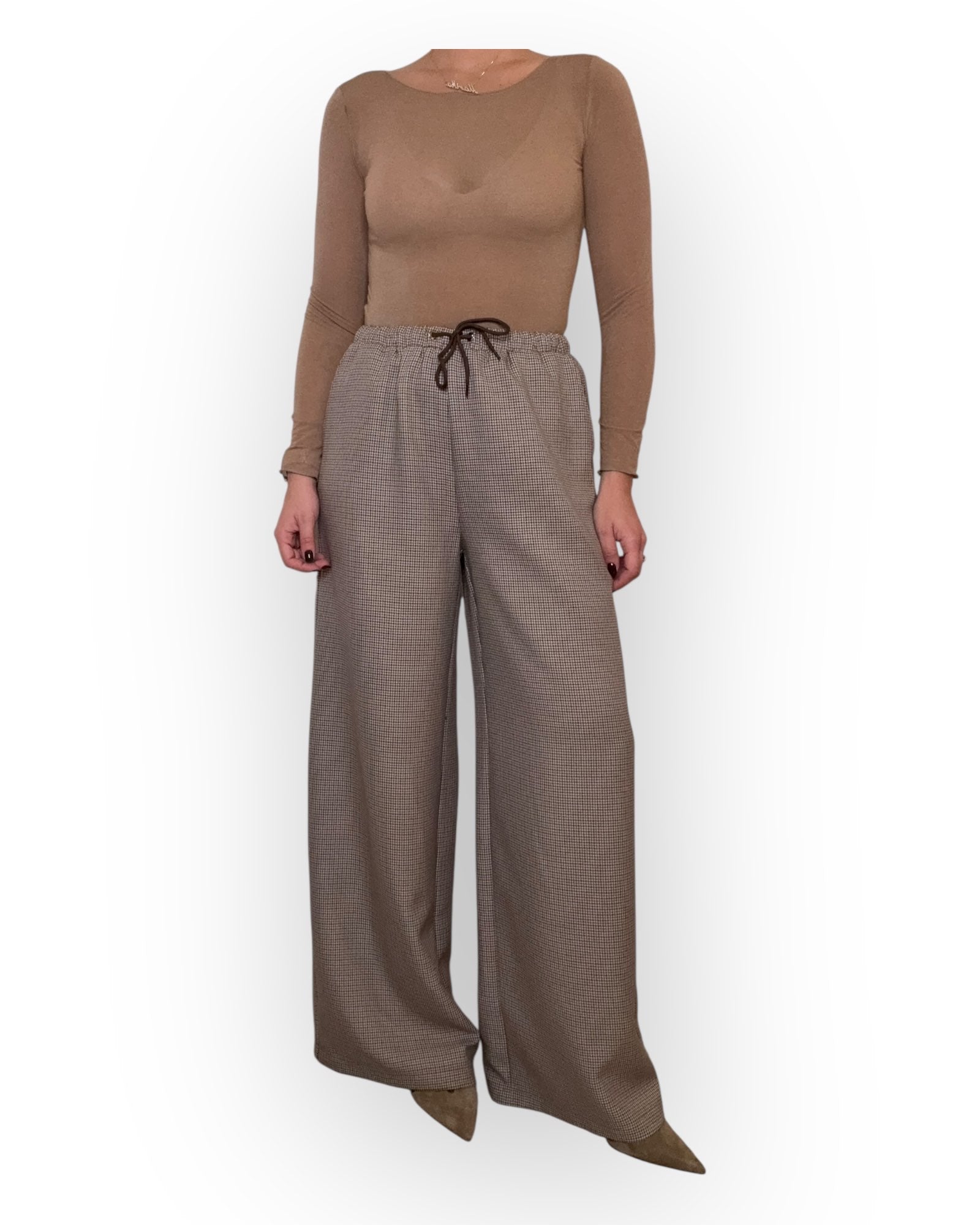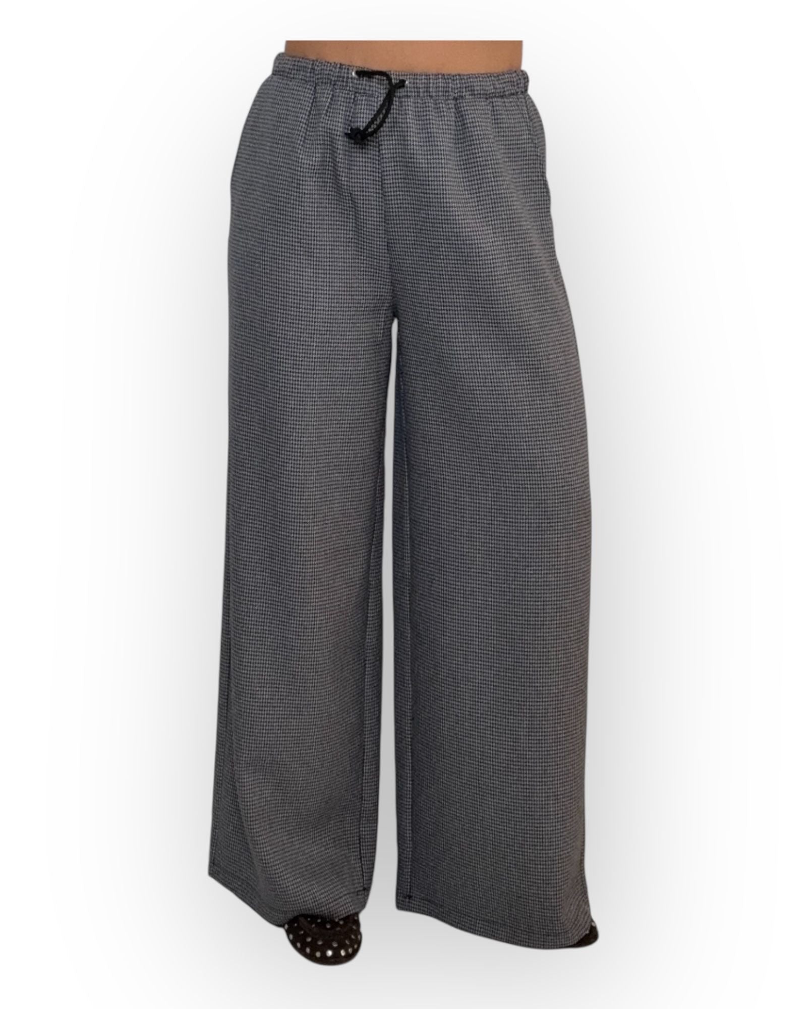 PANTALONE A PALAZZOCON ELASTICO IN VITA, FANTASIA PIED DE POOL.