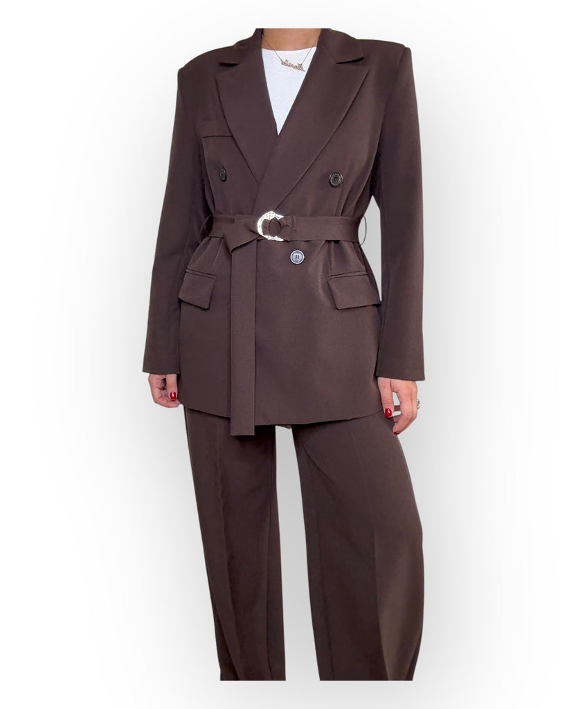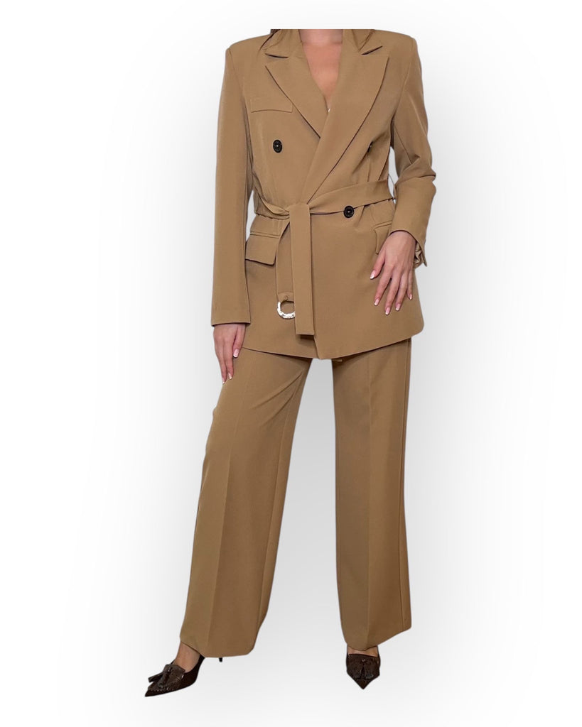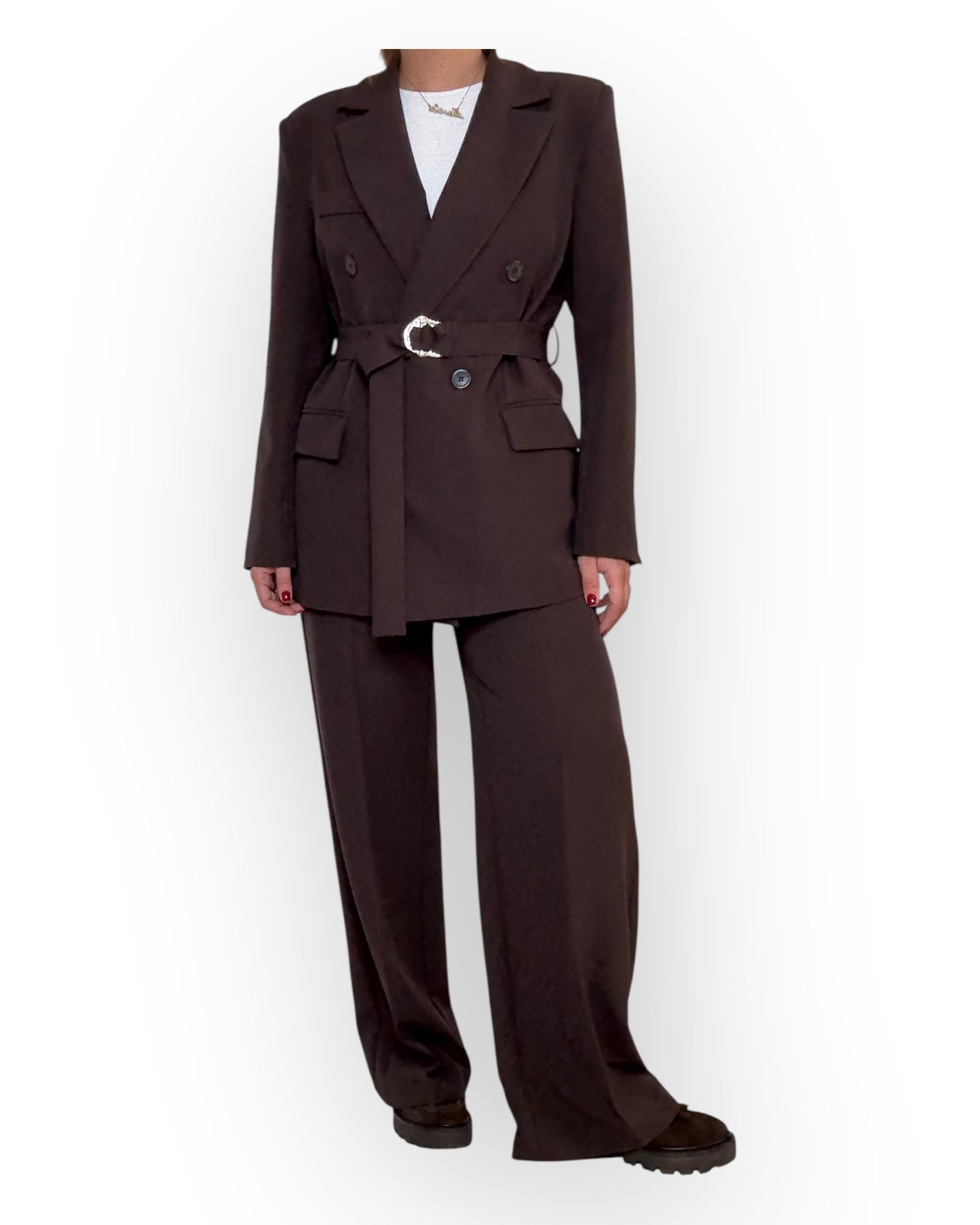 GIACCA DOPPIO PETTO CON CINTURA IN VITA E FIBIA DORATA.