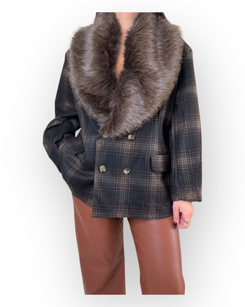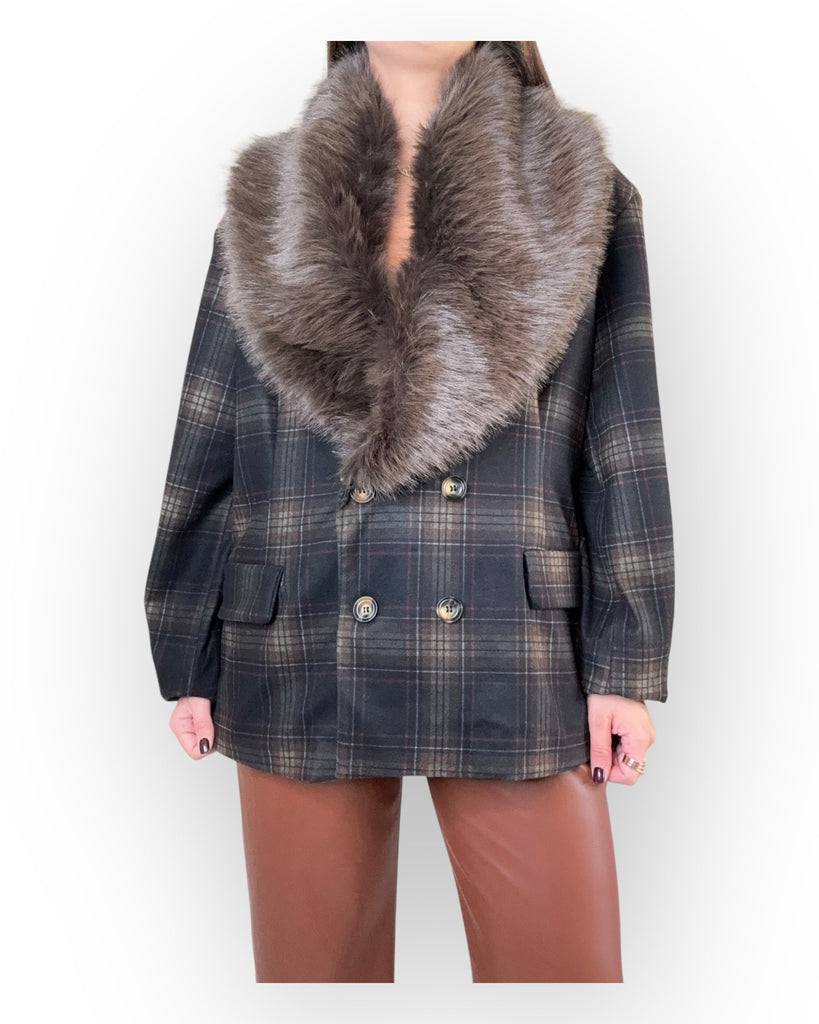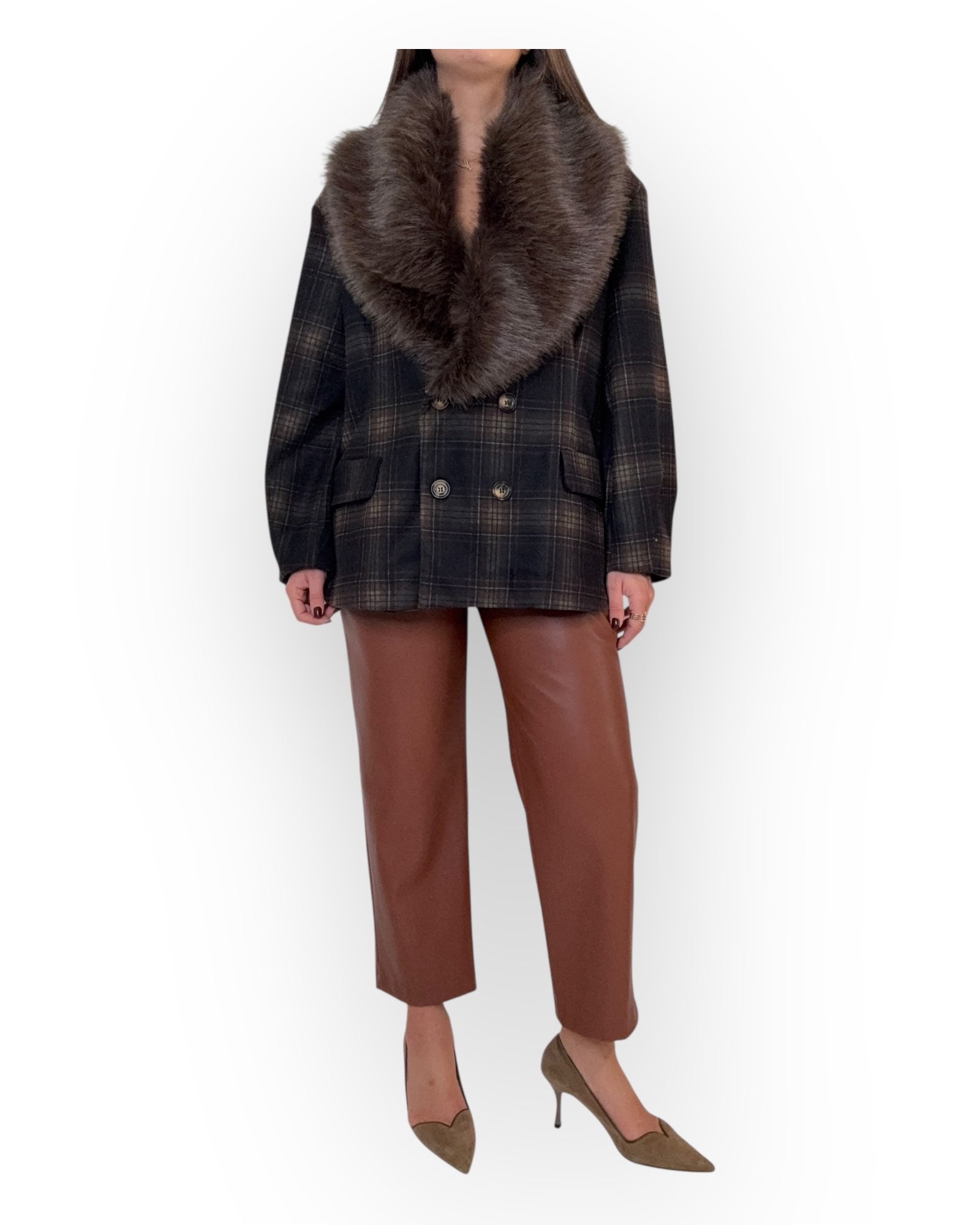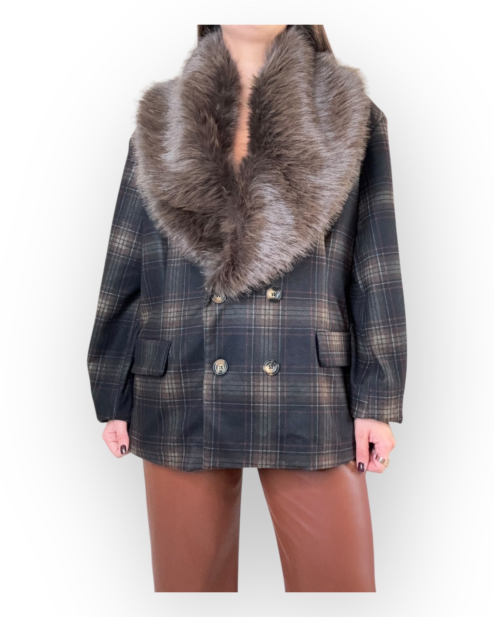 GIACCA DOPPIO PETTO A QUADRI CON PELLICCIA REMOVIBILE.