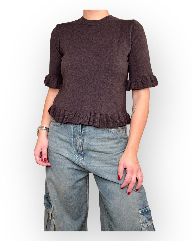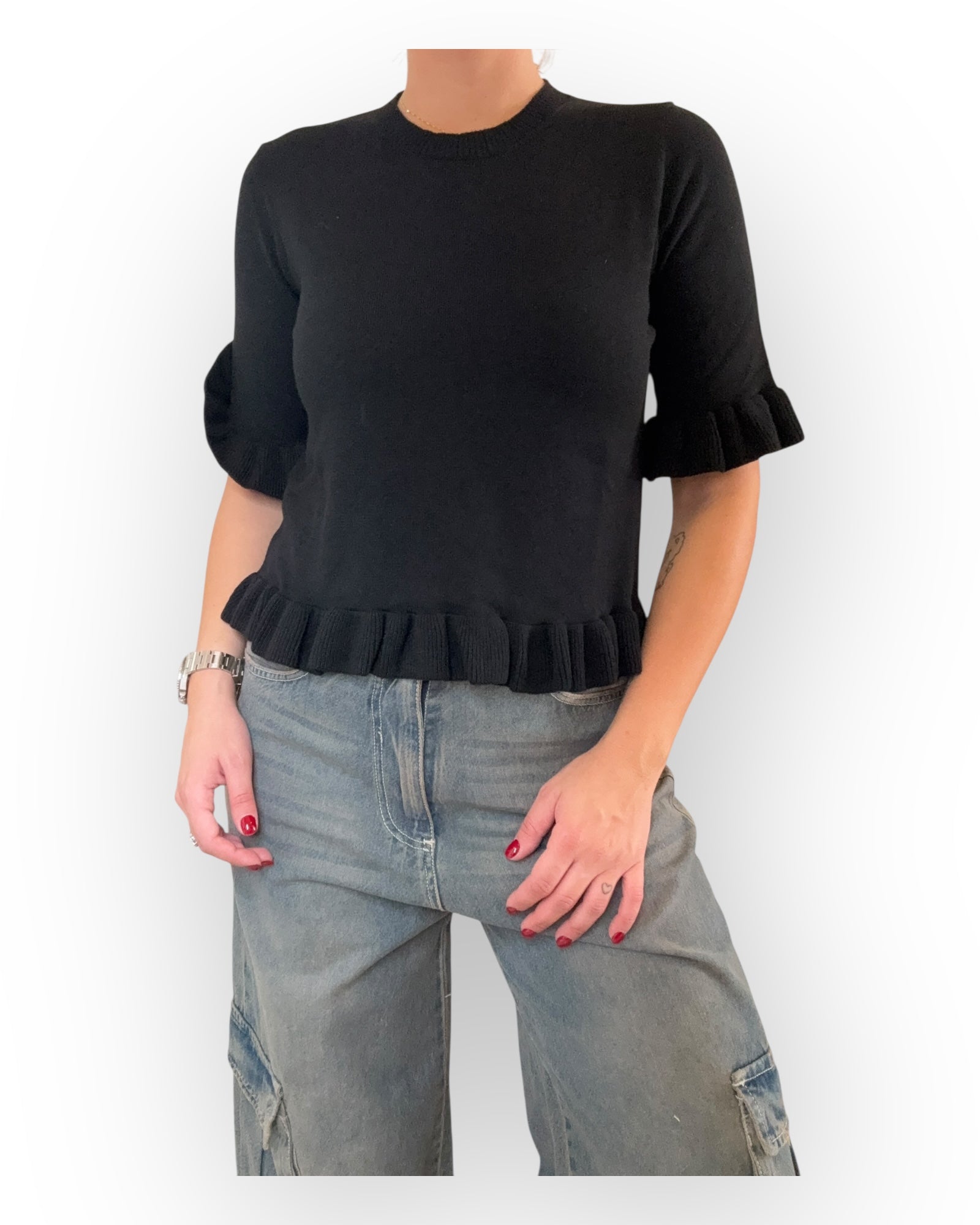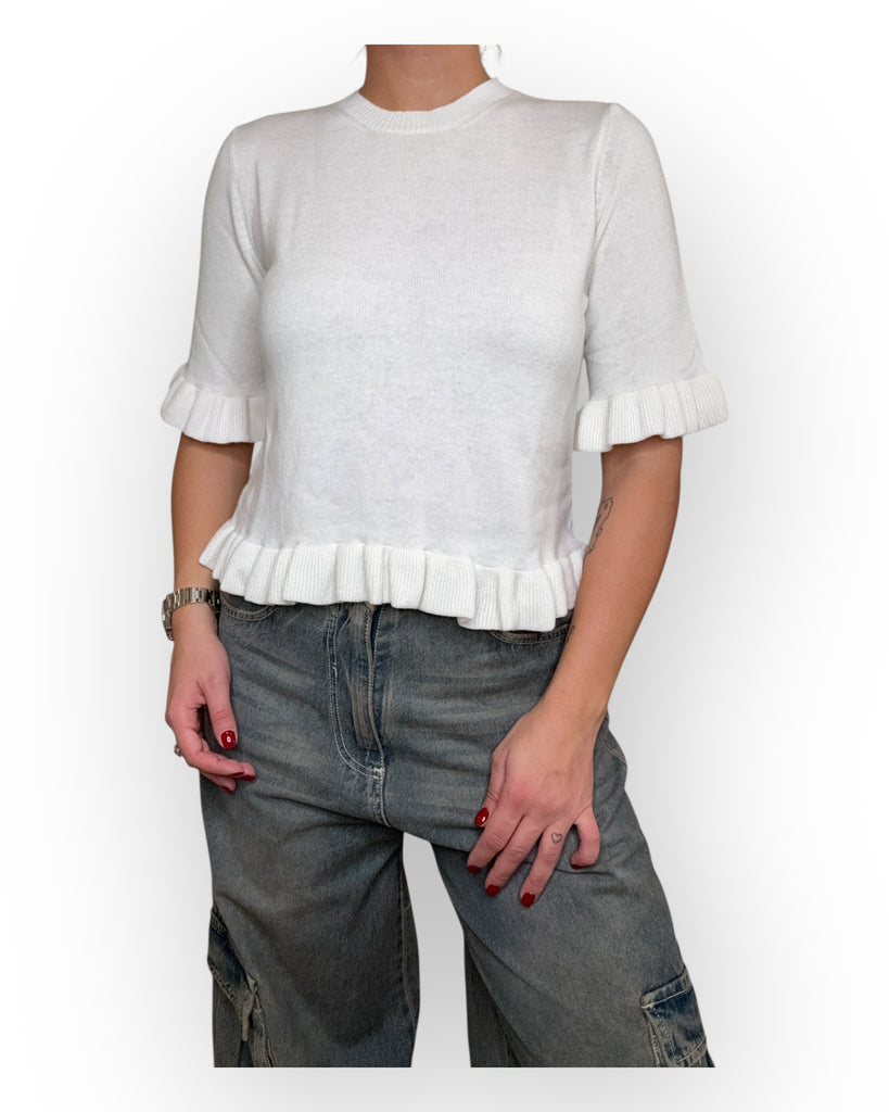 MAGLIONCINO A MEZZA MANICA CON ROUGE NELLA MANICA E SUL FONFO.