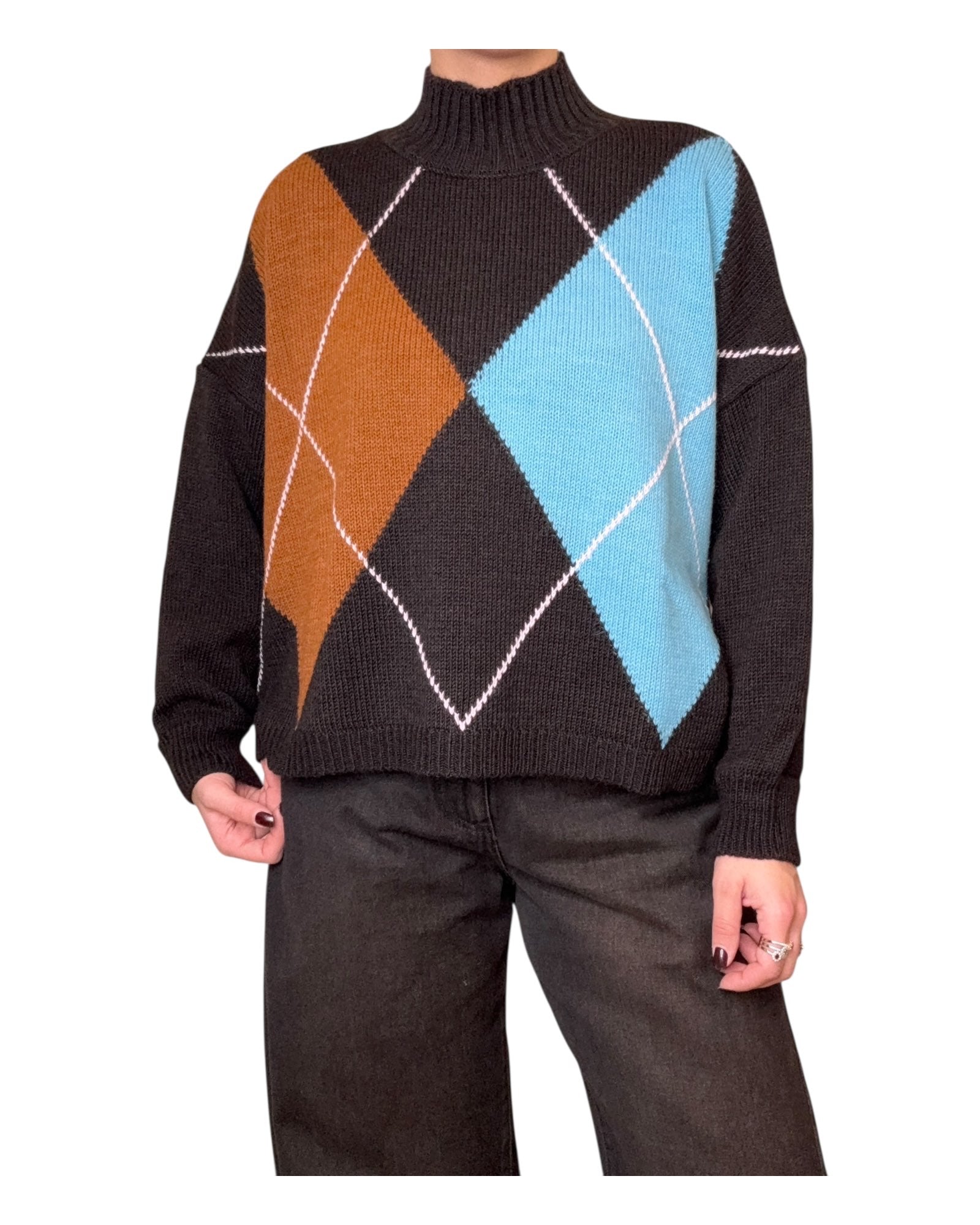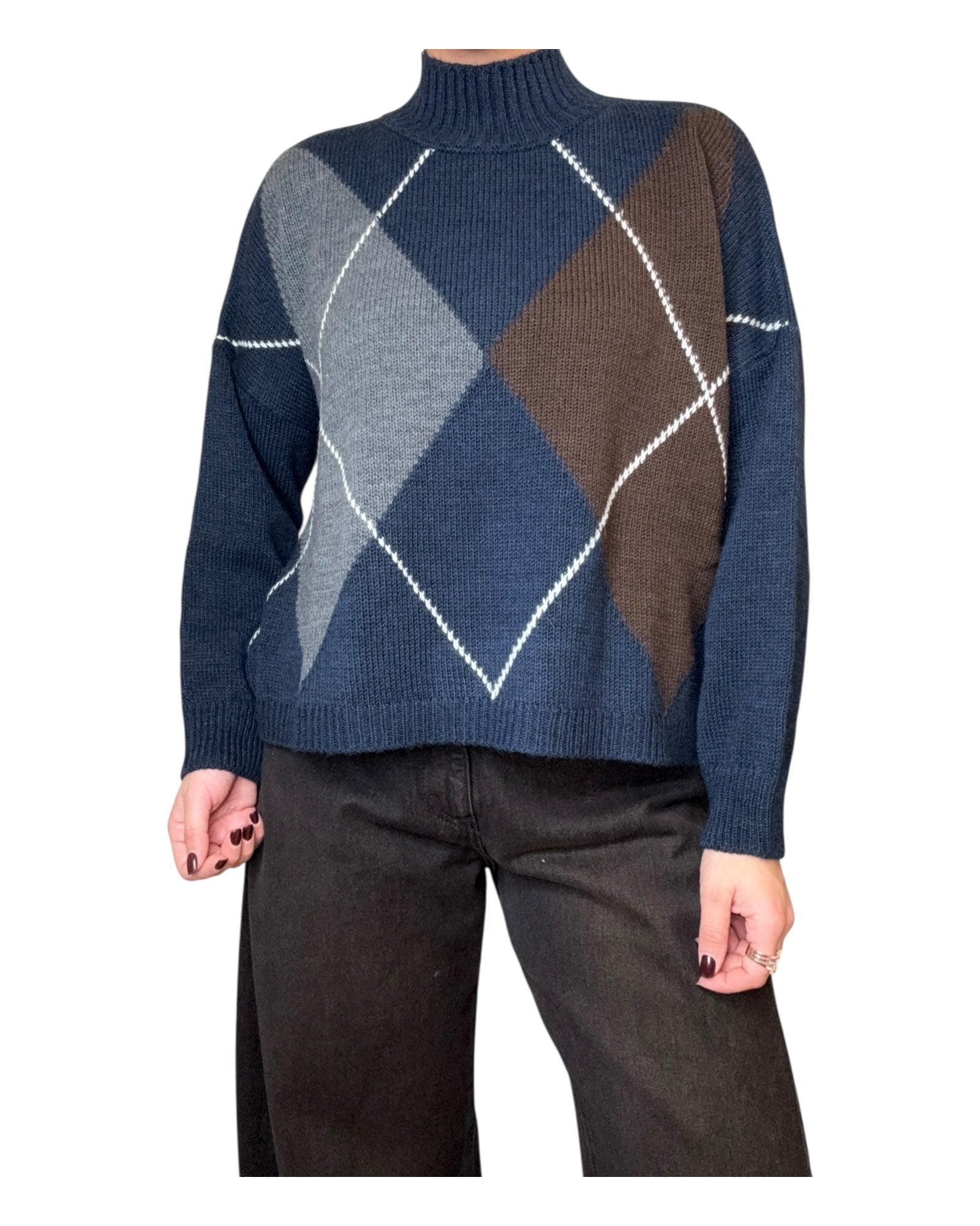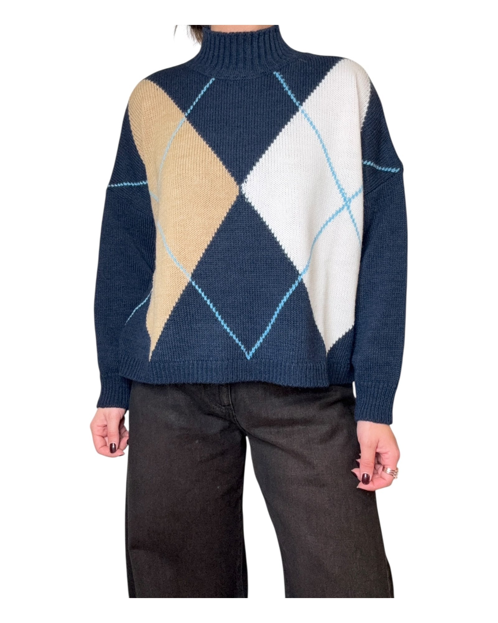 MAGLIONCINO A ROMBI A SCATOLETTA CON COLLO CRATERE