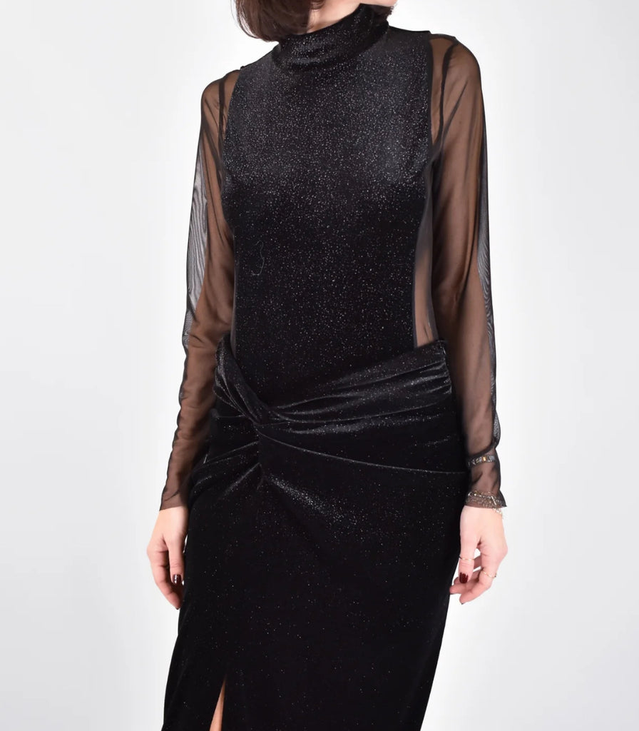 ABITO CORTO KONTATTO IN LUREX CON ARRICCIATURA LATERALE